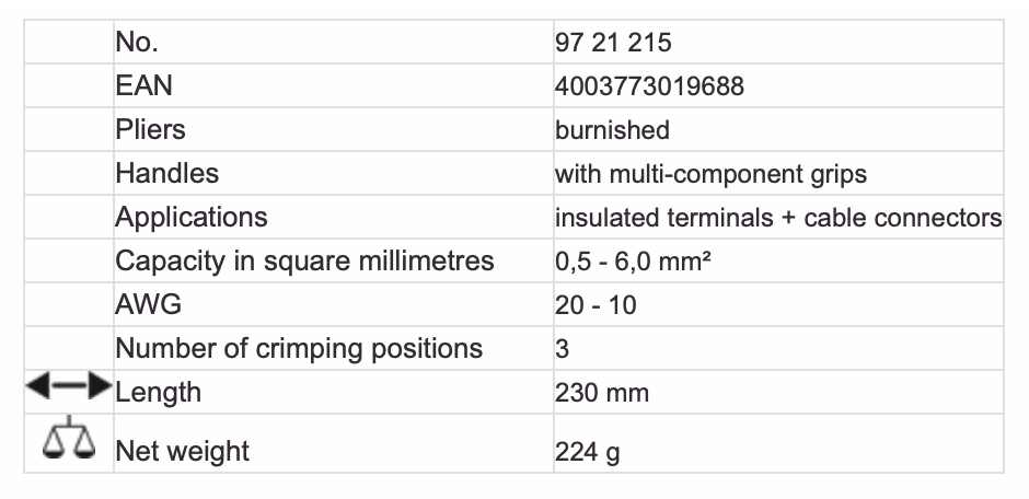 KNIPEX NO.97 21 215 Crimping Pliers (215mm.)