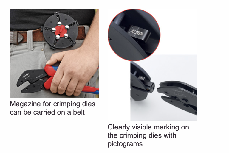 repetitive, high crimping quality due to precision dies and integral lock (self-releasing mechanism)
