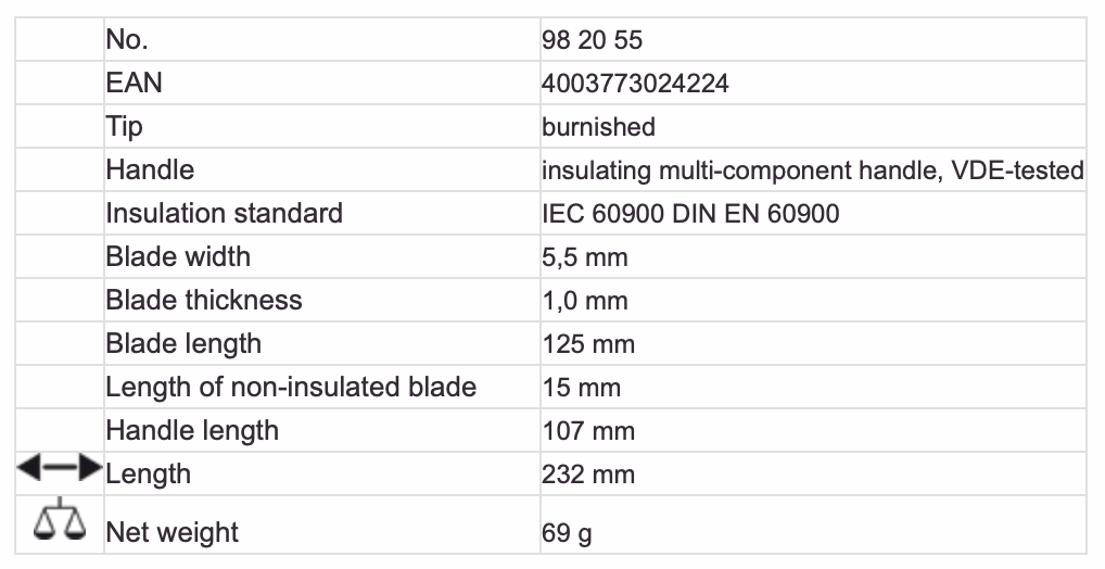 KNIPEX NO.98 20 55 Screwdrivers for slotted screws (232mm.)