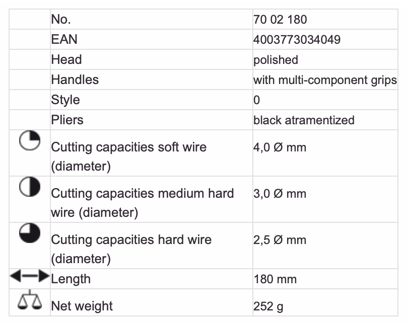 KNIPEX NO.70 02 180 Diagonal Cutters (180mm.)