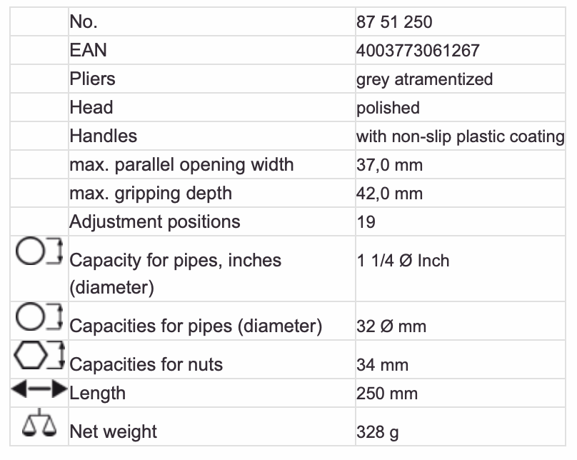 KNIPEX NO.87 51 250 Water Pump Pliers extra-slim (250mm.)