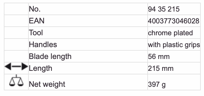 KNIPEX NO.94 35 215 Mitre Shears for plastic and rubber sections