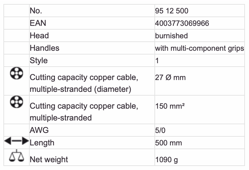 KNIPEX NO.95 12 500 Cable Shears (500mm.)