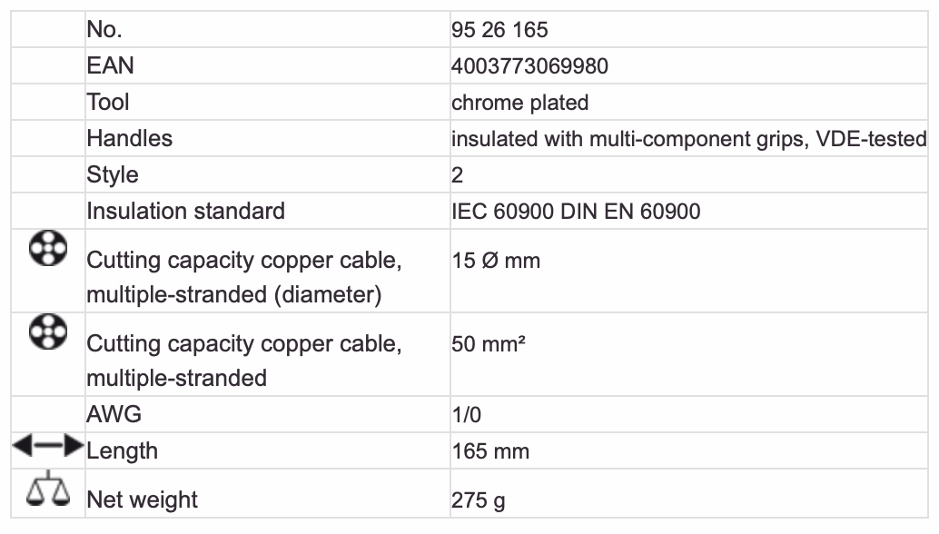 KNIPEX NO.95 26 165 Cable Shears (165mm.)