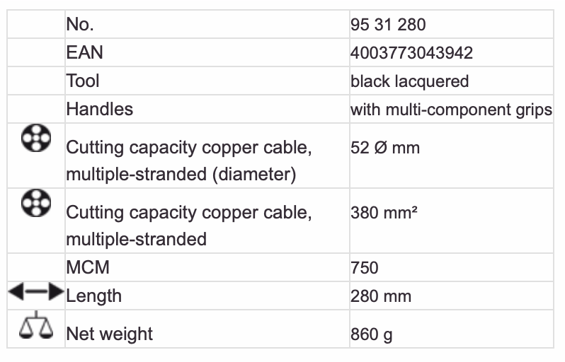 KNIPEX NO.95 31 280 Cable Cutters (ratchet action) (280mm.)