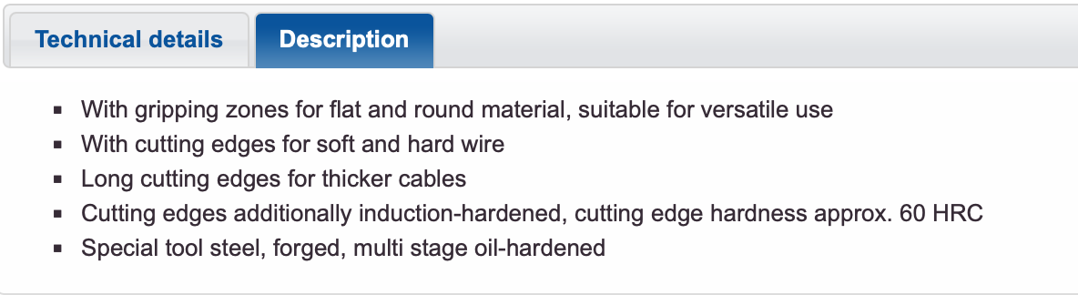 Cutting capacities hard wire (diameter) 2,2 Ø mm