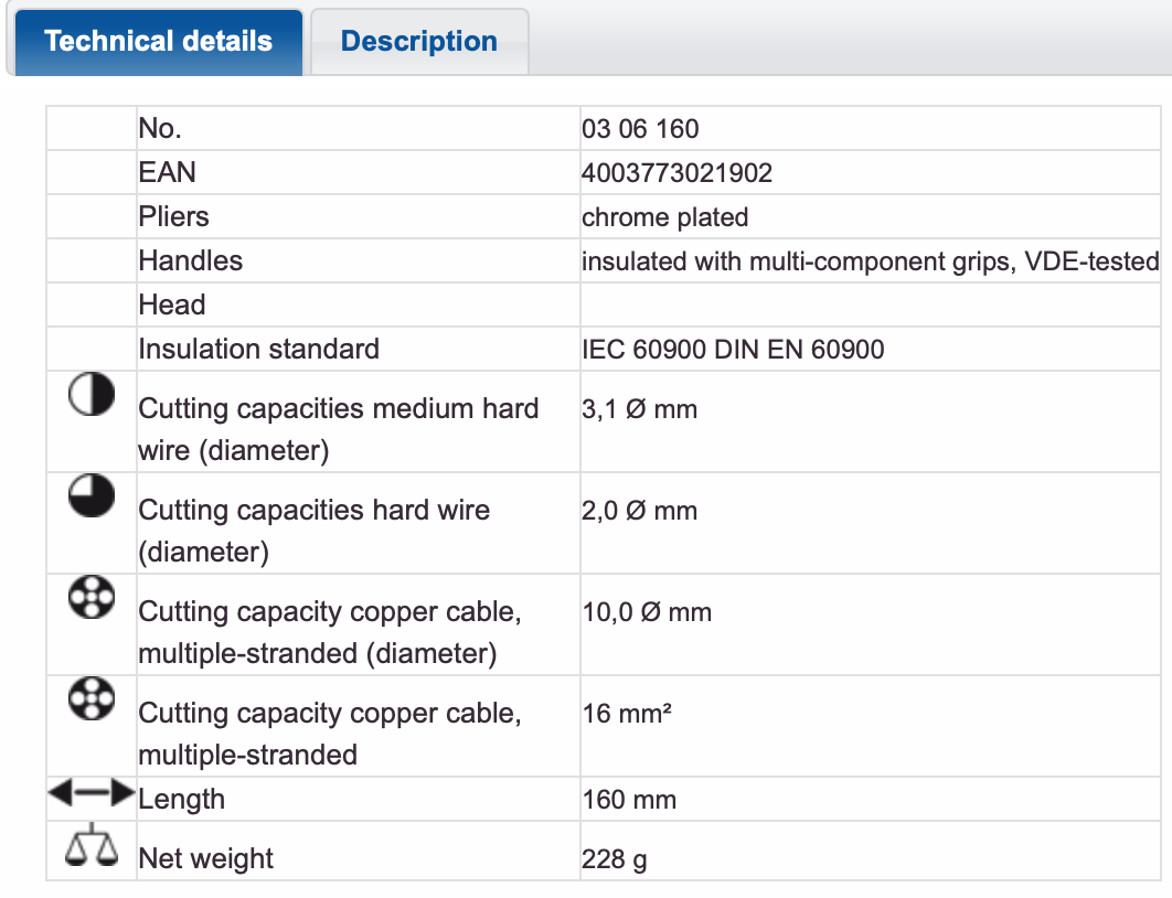 Cutting capacities medium hard wire (diameter) 3,4 Ø mm