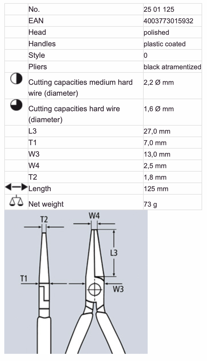 KNIPEX NO25 01 125 Snipe Nose Side Cutting Pliers 125mm
