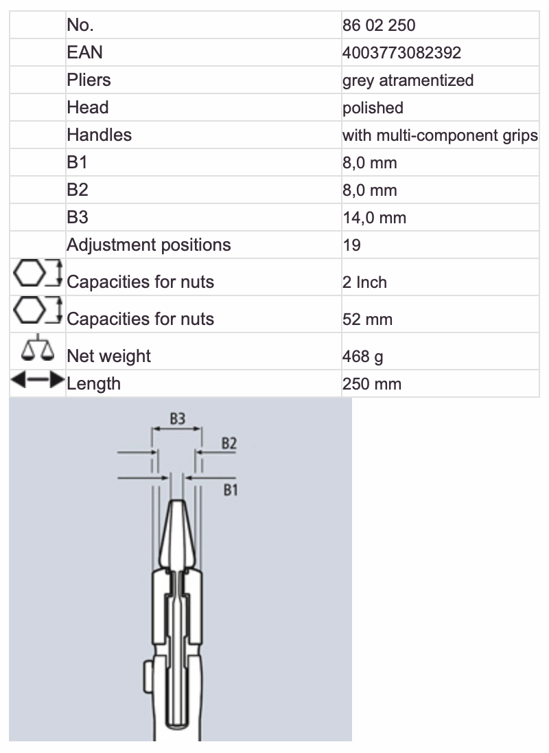 KNIPEX NO.86 02 250 Pliers Wrench 250mm