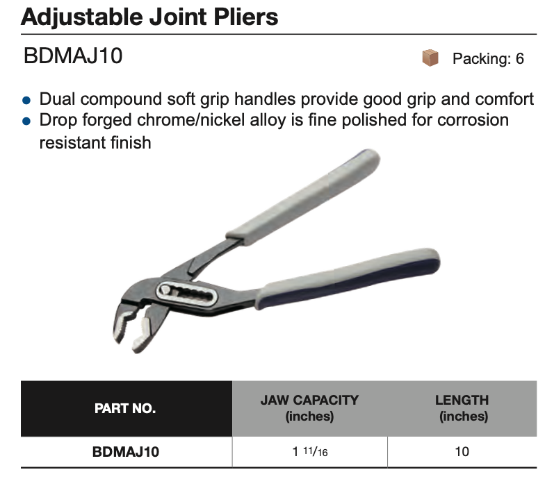 BLUE-POINT NO.BDMAJ10 Pliers Adjustable Joint Tongue and Groove 10"