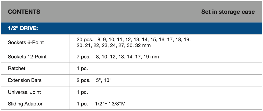 BLUE-POINT NO.BLPATSM1225 Set Socket 1/2"Dr. 25pcs.