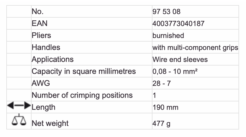 KNIPEX NO.97 53 08 Self -Adjusting Crimping Pliers for end sleeves(190mm.)